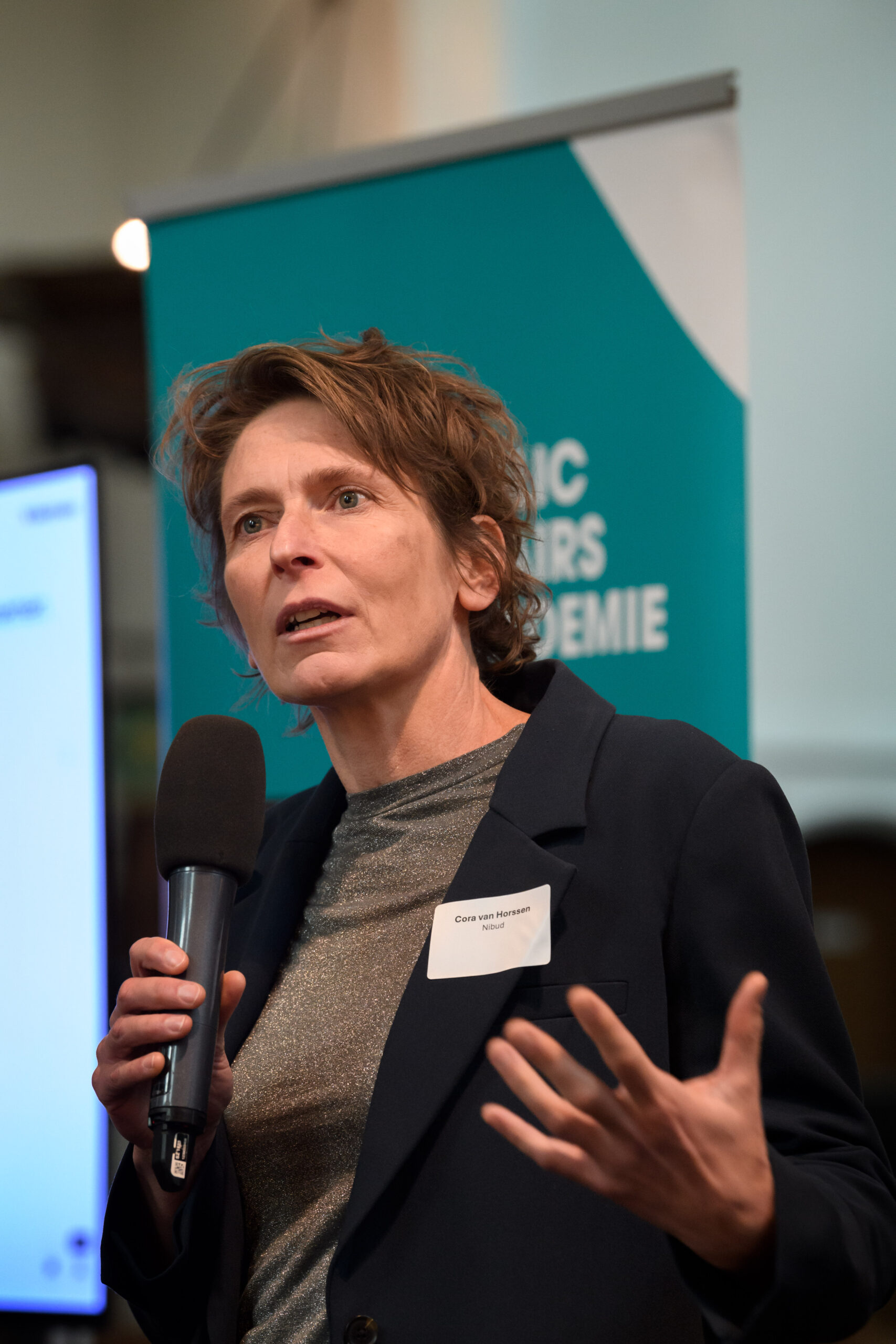 · Cora van Horssen (interim-directeur Nibud) en Casper Cornelisse (CNV Jongeren) spraken over bestaanszekerheid en vertrouwen. Cora van Horssen belichtte de groeiende financiële druk op huishoudens en de positieve impact die een verhoging van het minimumloon zou hebben. Casper Cornelisse onderstreepte dit punt en maar ging vooral in op de positie van jongeren. “Betrek hen bij nieuw beleid, zet ze centraal. Op alle terreinen. En vooral bij wonen. De huur van een kleine studio voor 2000 euro per maand mag niet de norm zijn.”